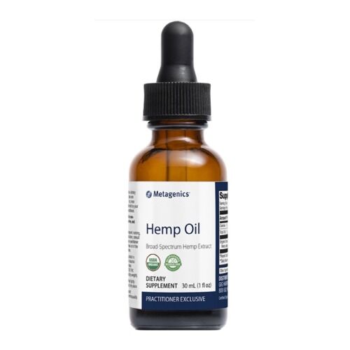 Metagenics Hemp Oil is an organic, broad-spectrum hemp extract sourced from aerial plant parts (stalk, stems, seeds, and flower) that consists of naturally occurring phytocannabinoids and terpenes, which have been shown to support body function and general health.*